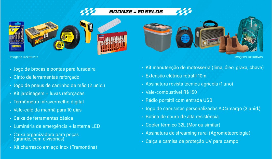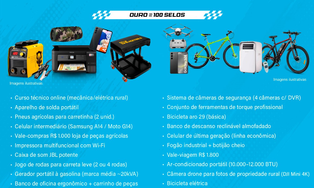 - Prêmios e brindes estão sujeitos à disponibilidade de estoque.